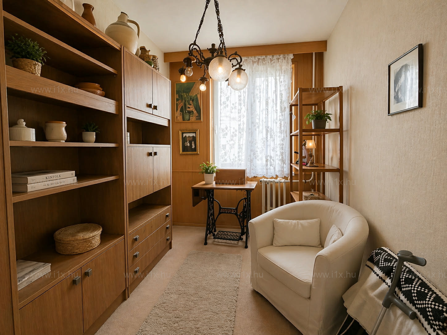 Több helyiségben lambériás falburkolat található, amely kedvelőinek külön értéket képviselhet. A praktikus tárolást az előszobában és az egyik hálószobában található beépített szekrények segítik.